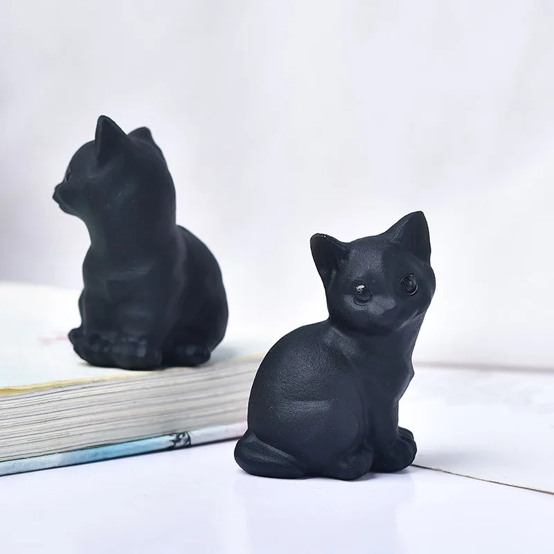 Enchanting Natural Obsidian Cat Ornament and Natural Obsidian Cat Ornament are ideal for aquarium home decorations, crystal room decor, and witchcraft Halloween crafts. This crystal cat figurine is perfect for adding a mystical touch to your space.