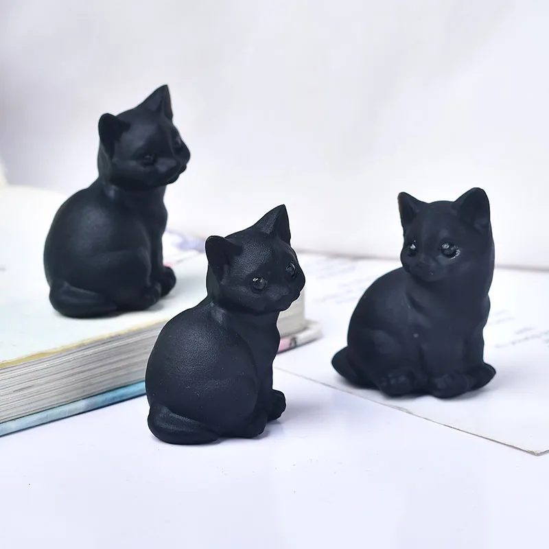 Crystal cat figurine Halloween crystal decor Obsidian cat sculpture Natural stone ornament Healing crystal cat Black obsidian decoration Mystical home decor Unique crystal gift Handcrafted obsidian cat Spiritual cat ornament
